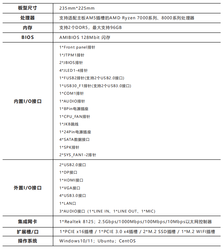 支持1个LAN口(Realtek 8125;2.5Gbps/