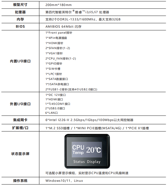 -支持6个LAN口(Intel I226-V,2.5Gbps/