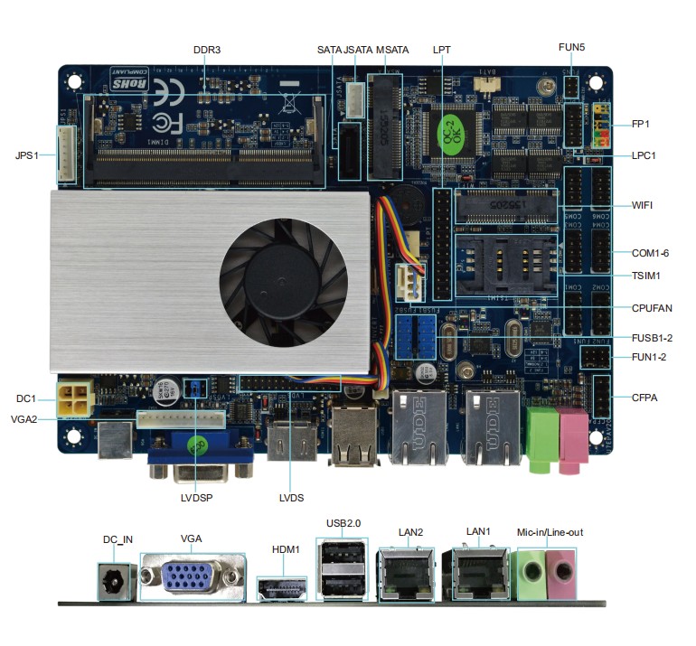 | 板载Mini_PCIe | 1*mSATA,1*WiFi 插槽 |
