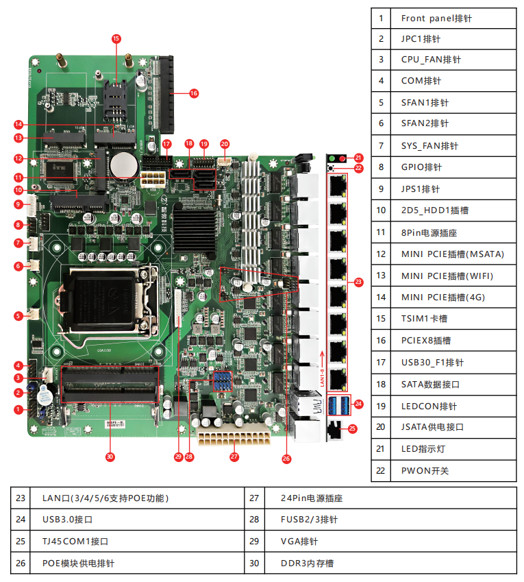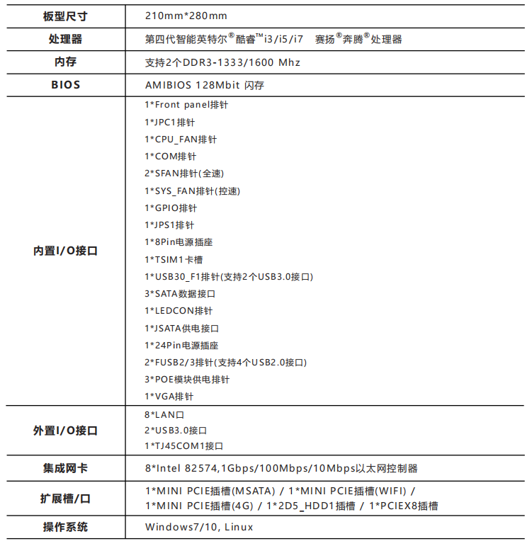 支持8个LAN口(Intel 82574,1Gbps/100Mbps/