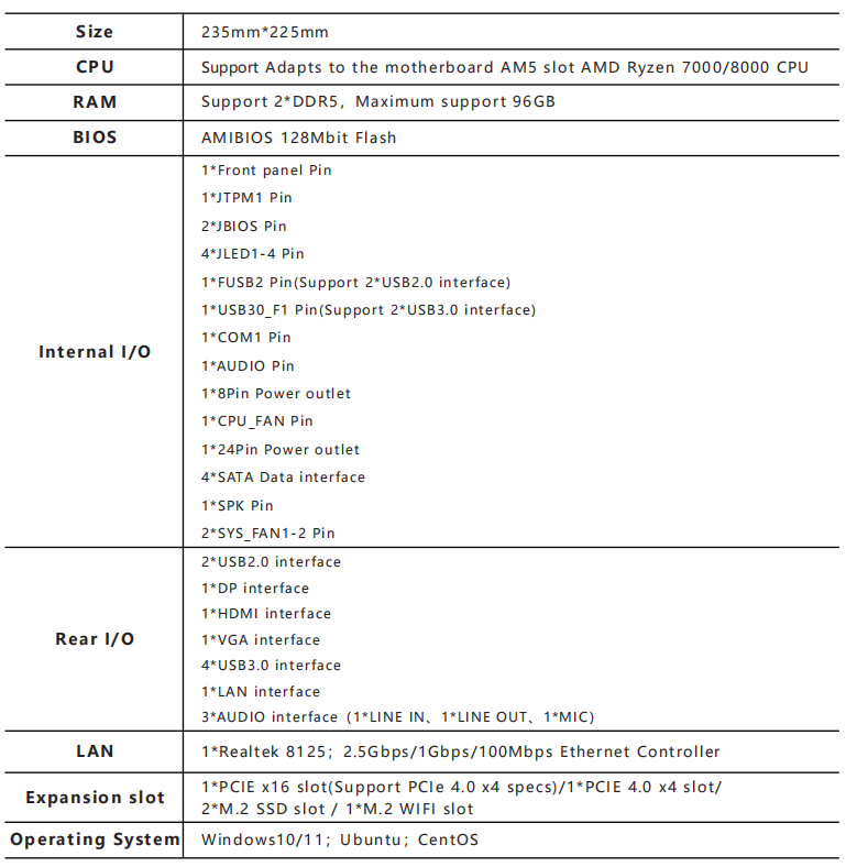Support 1*LAN(Realtek 8125;2.5Gbps/