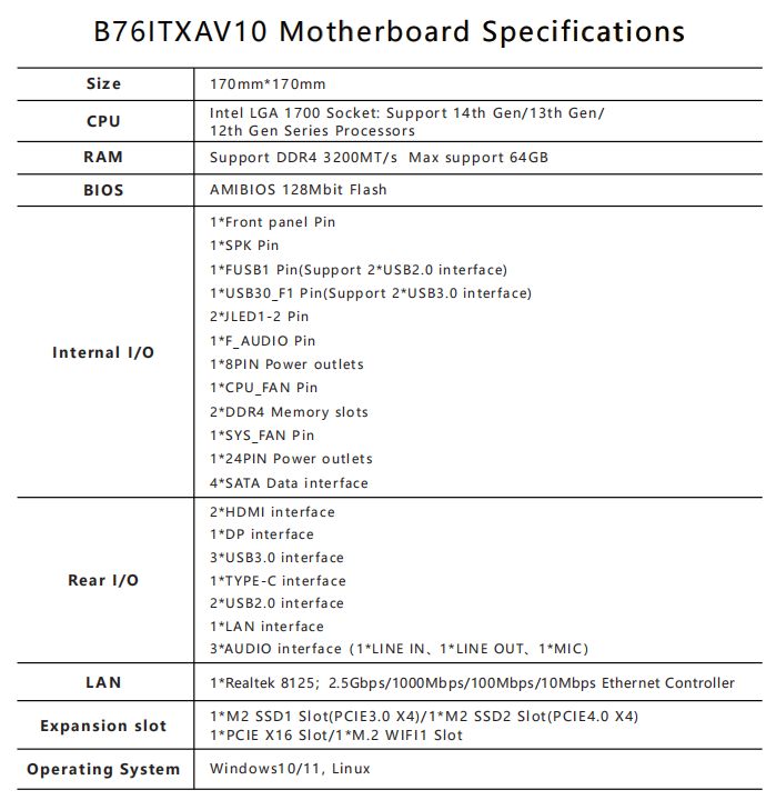 Support 1*LAN(Realtek 8125;2.5Gbps/