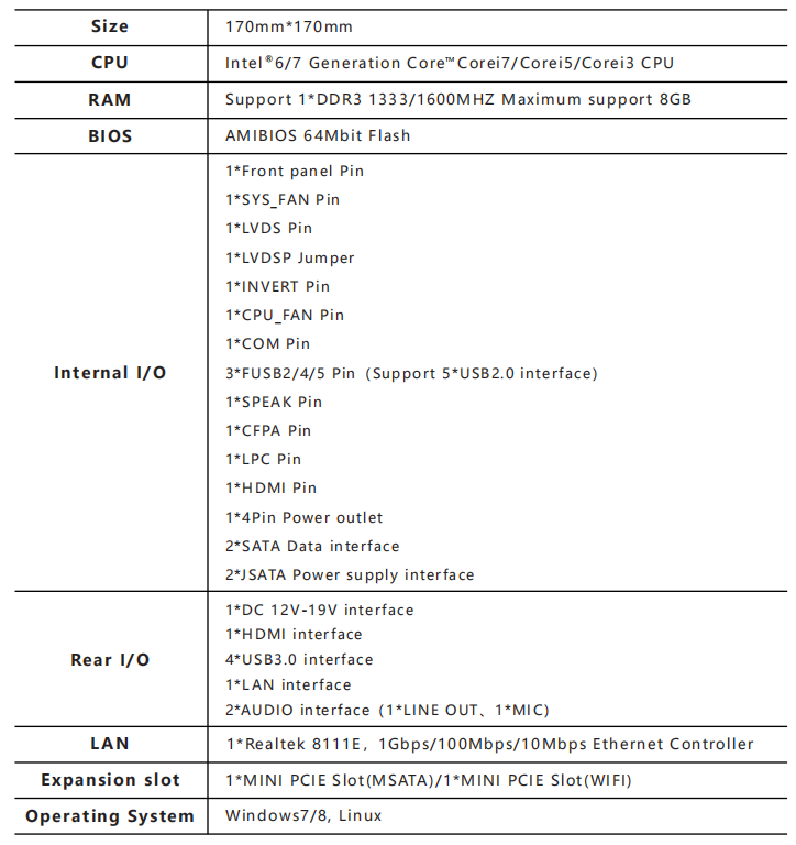 Support 1*LAN(Realtek 8111E,1Gbps/
