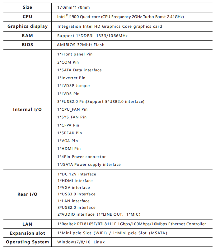 - Support 2*HDMI/2*VGA/1*LVDS Displays the output