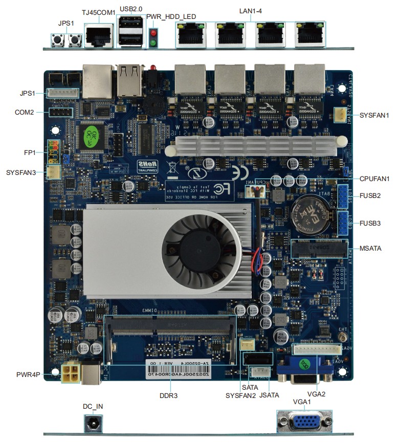 | CPU | Support Intel Atom™ D2500 (1M Cache, 1.86 GHz) Processor |