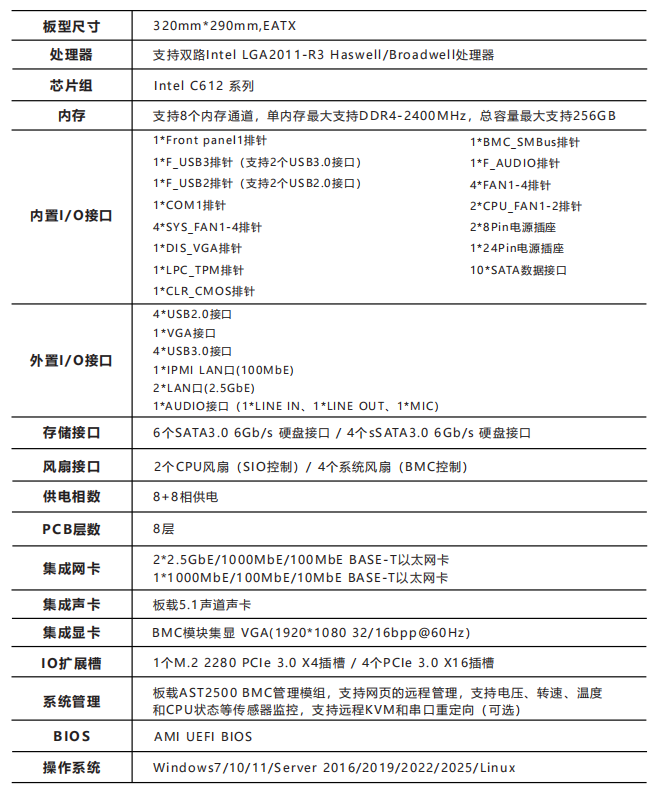 支持双路Intel LGA2011-R3