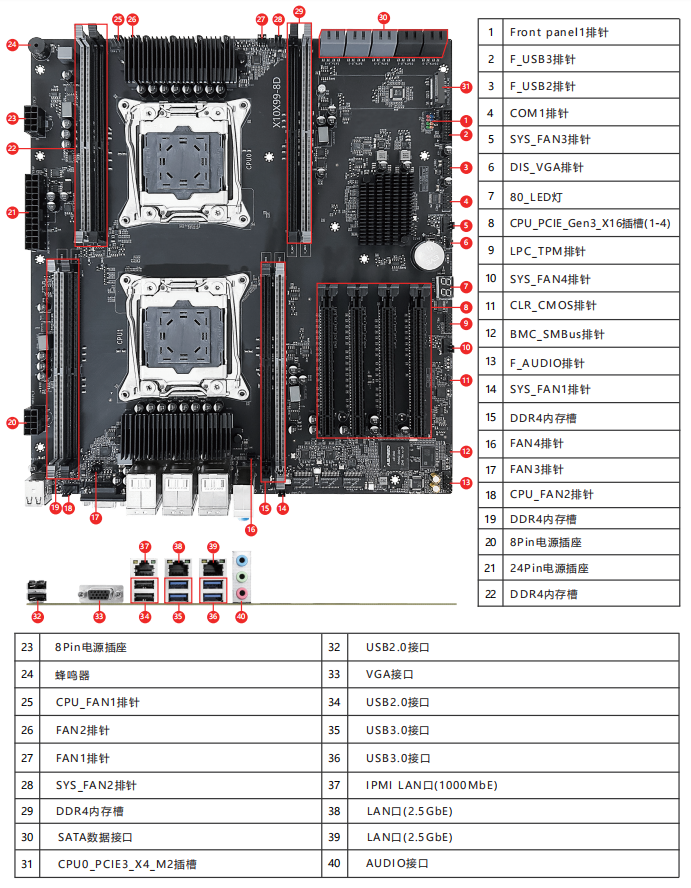 板载AST2500 BMC管理模组(可选)
