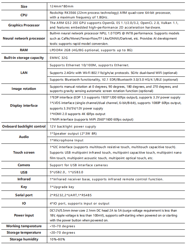 RK3566 high-performance AI processor, Neural Network Processor NPU, Android 11.0 operating
