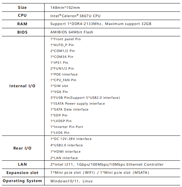 Support 2*LAN(Intel I211 1Gbps/